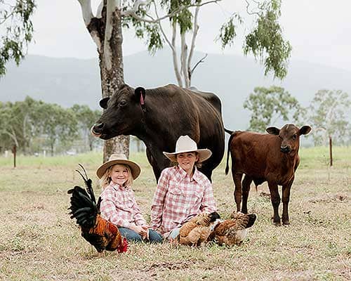 Family owned and operated by Rebecca and Keith Mitchell, ably assisted by their three daughters, Elliot Park Grazing is a real family affair. All five are involved every step of the way, from birthing to raising and delivering the meat to your kitchen bench. Our approach to caring for cows and country is grounded in ethical farming, sustainability and a nature and nurture philosophy. Our herd enjoy a stress-free life, grazing in open paddocks and rotated across the fields to provide time for the earth and grass to regenerate. We’ve carefully developed our stock to embody breeds that naturally thrive in our hot tropical conditions, with immunity to ticks and parasites.